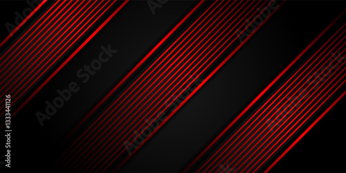 Wall mural abstract dark gray background with bright red stripes in empty space. dark colored wide abstract ban
