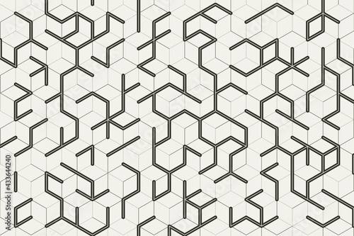 The watermark will not be included on Wall mural.: Abstract dark grey cube pattern on white background - modern black lines square mesh - simple flat geo