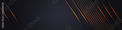 Wall mural abstract dark grey horizontal wide banner with orange light lines on blank space. futuristic dark lu
