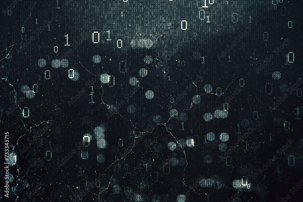Wall mural abstract dark hacking background with bokeh circles and binary coding. malware and phishing, data th - Wall murals Wall mural abstract dark hacking background with bokeh circles and binary coding. malware and phishing, data th - Wall murals