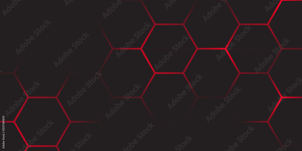 Wall mural abstract dark hexagon technology background with red colored. hexagonal gaming vector tech illustrat