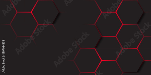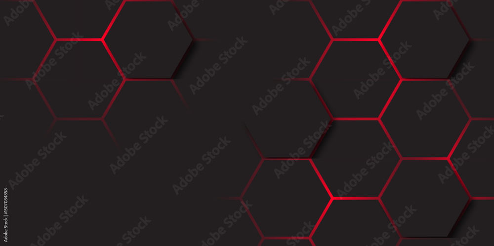 Wall mural abstract dark hexagon technology background with red colored. hexagonal gaming vector tech illustrat
