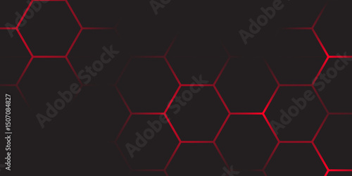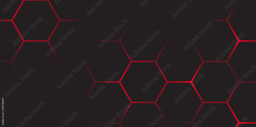 Wall mural abstract dark hexagon technology background with red colored. hexagonal gaming vector tech illustrat