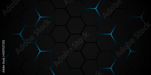 Wall mural Abstract Dark Hexagonal Pattern with Futuristic Glow. Modern Technology-Inspired Black Honeycomb Grid. Hexagon. Technology. Vector.
