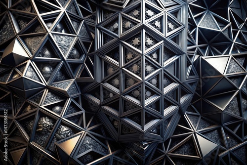 Wall mural abstract dark metallic geometric structure with intricate triangular facets and textured interiors