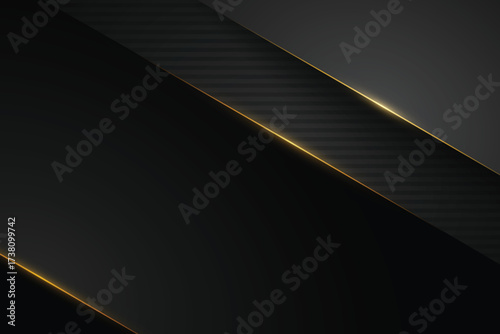 Wall mural : Abstract dark shape diagonal shadow and golden line on black background vector eps10