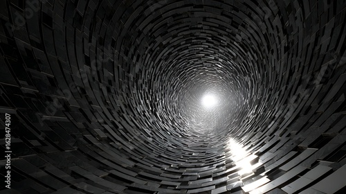 The watermark will not be included on Wall mural.: Abstract dark tunnel background with light at the end, creating a futuristic and geometric perspecti