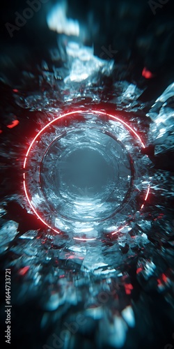 The watermark will not be included on Wall mural.: Abstract dark tunnel with neon circle light, creating a futuristic and mysterious background for var