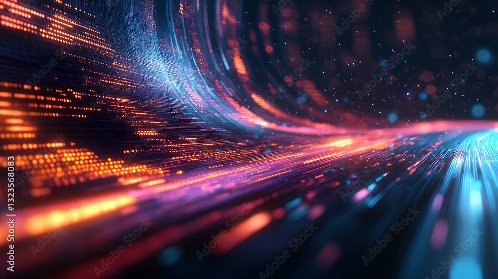 Wall mural abstract data stream: a high-speed information highway with glowing light trails and futuristic tech - Wall murals Wall mural abstract data stream: a high-speed information highway with glowing light trails and futuristic tech - Wall murals