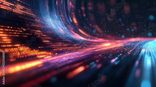 Wall mural abstract data stream: a high-speed information highway with glowing light trails and futuristic tech