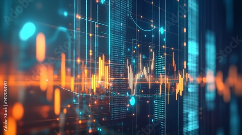 The watermark will not be included on Wall mural.: Abstract data visualization digital background with lines and glowing elements design concept