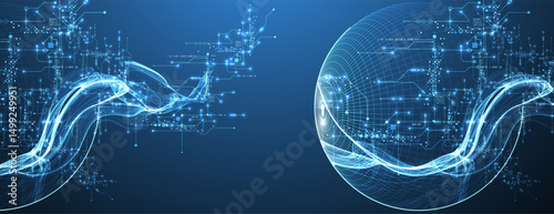 The watermark will not be included on Wall mural.: Abstract data wave with sphere and futuristic circuit lines - technology concept - vector