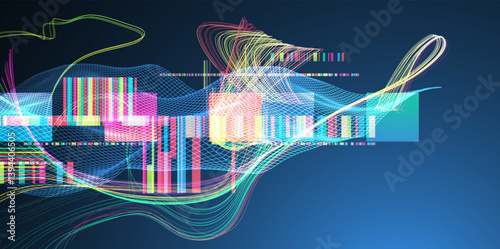 The watermark will not be included on Wall mural.: Abstract data waveform background with dynamic lines, grids, and color bars - vector illustration -