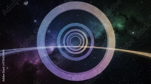The watermark will not be included on Wall mural.: Abstract deep space background featuring slowly expanding rings of iridescent light and subtle parti