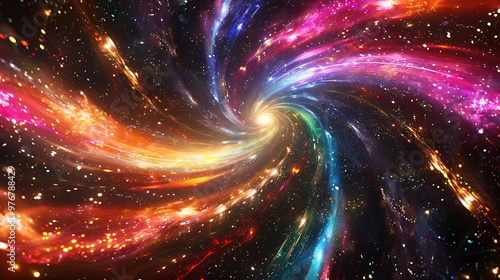 Wall mural : Abstract depiction of a cosmic vortex, swirling with colorful energy and starlight, evoking a sense