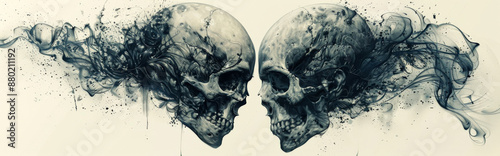 Wall mural abstract depiction of a heart and a skull intertwined, using minimalistic shapes and lines to explor - Wall murals Wall mural abstract depiction of a heart and a skull intertwined, using minimalistic shapes and lines to explor - Wall murals