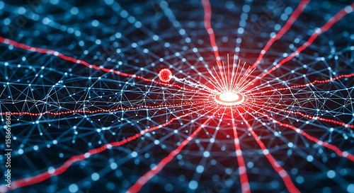 The watermark will not be included on Wall mural.: Abstract depiction of a network with a central glowing point and connecting lines -