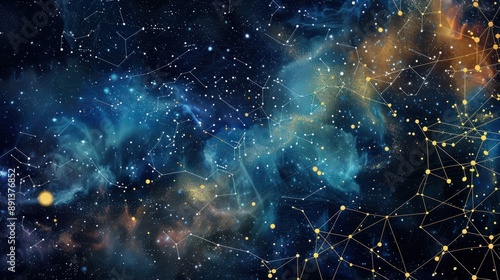 Wall mural abstract depiction of a starry night sky with constellations and cosmic colors background