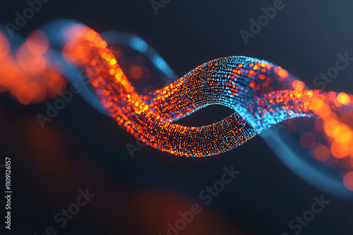 Wall mural : Abstract depiction of data streams forming brain representation, showcasing vibrant orange and blue