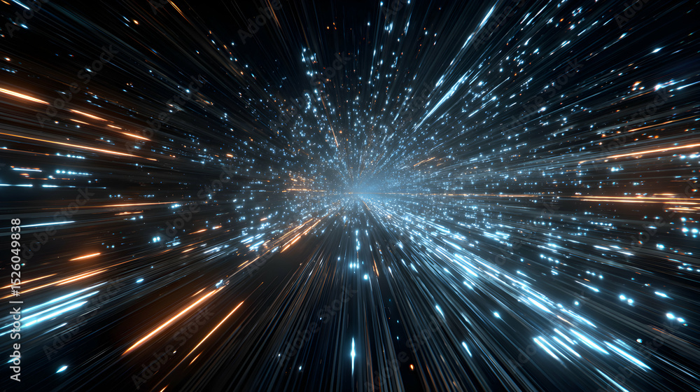 Wall mural : Abstract depiction of speed and motion through space with luminous trails of light particles