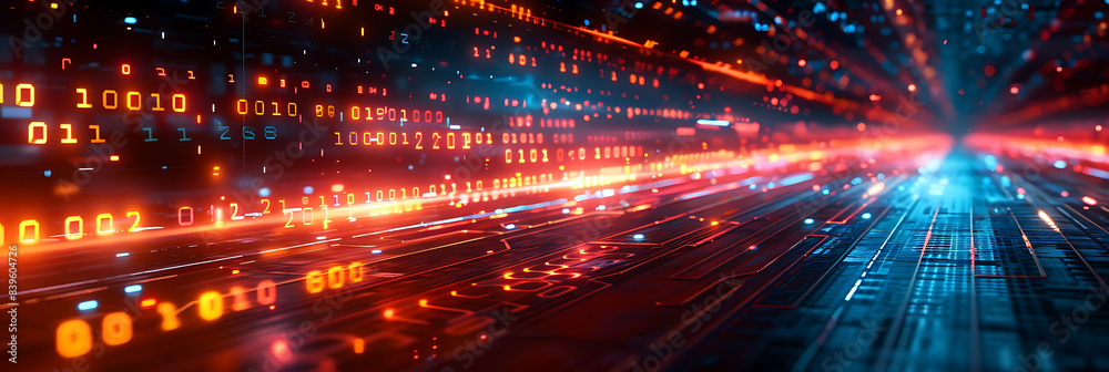 Wall mural : Abstract depiction of virtual servers with motion blur highlighting the dynamic and continuous data