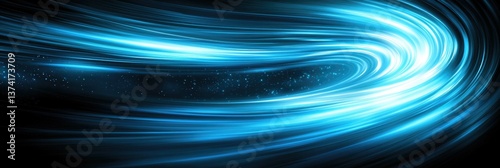 Wall mural abstract design features flowing blue light patterns in space - Wall murals Wall mural abstract design features flowing blue light patterns in space - Wall murals