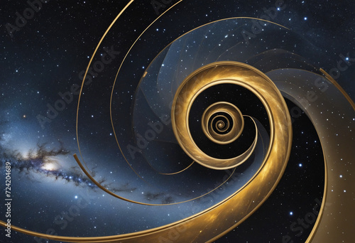 Wall mural abstract design of golden ratio. golden spiral on space background. generative ai
