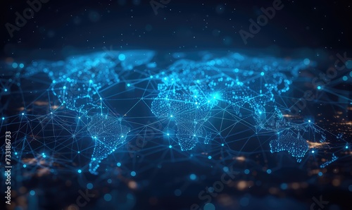 The watermark will not be included on Wall mural.: Abstract design of network technology world map, in the style of motion blur panorama, flat backgrou