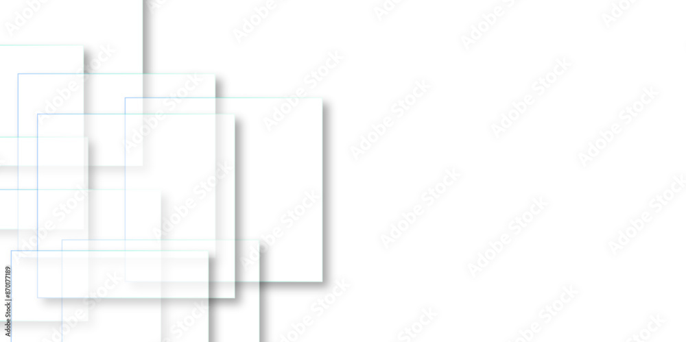 Wall mural abstract design with white transparent material in triangle and square shapes on white background. m