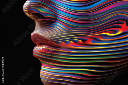 The watermark will not be included on Wall mural.: Abstract digital art featuring colorful flowing lines forming a face with vivid hues and intricate p