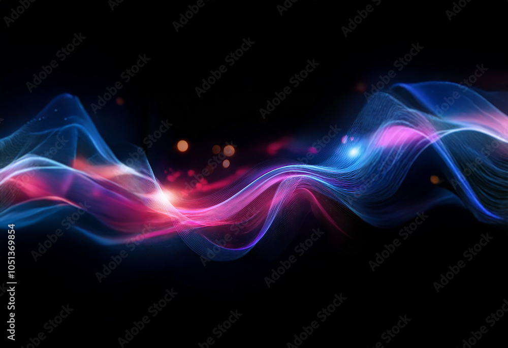 The watermark will not be included on Wall mural.: Abstract digital art featuring flowing blue and pink waves with a hint of sparkle -