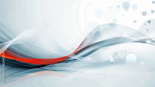 Wall mural abstract digital art of flowing wave with dotted texture and red accent on a white background. - Wall murals Wall mural abstract digital art of flowing wave with dotted texture and red accent on a white background. - Wall murals