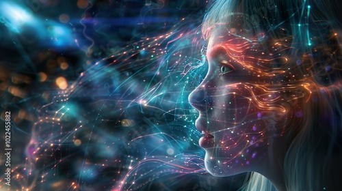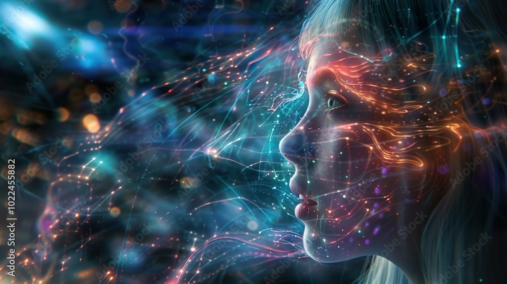 The watermark will not be included on Wall mural.: Abstract digital art: glowing lines and patterns