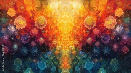 Wall mural : Abstract digital artwork kaleidoscopic patterns vivid color gradients mesmerizing geometric forms wa