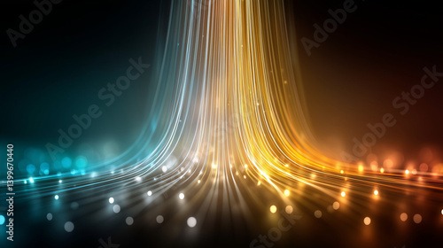 Wall mural : Abstract digital artwork showcasing flowing lines and bokeh lights in cool blues and warm oranges, r