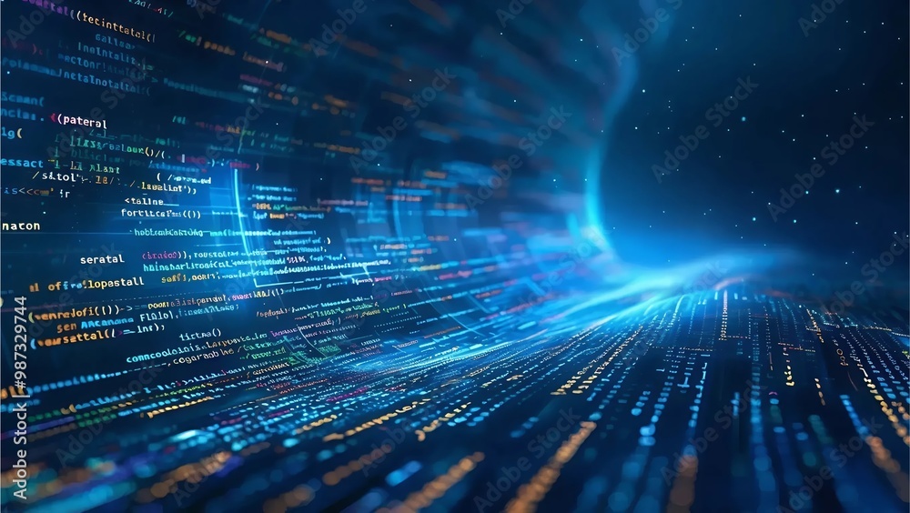 Wall mural abstract digital background featuring computer code, highlighting javascript text in a software desi - Wall murals Wall mural abstract digital background featuring computer code, highlighting javascript text in a software desi - Wall murals