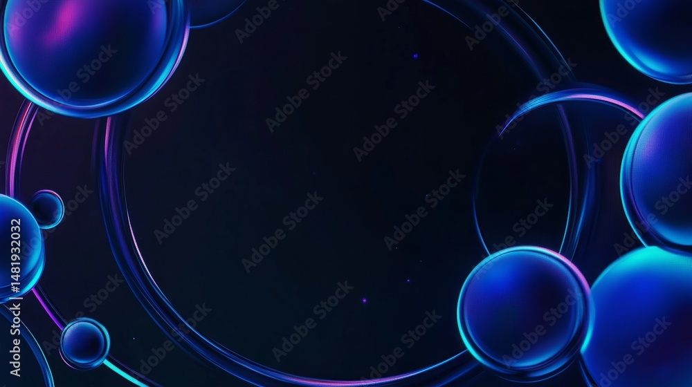 The watermark will not be included on Wall mural.: Abstract digital background featuring floating blue spheres with smooth gradients and soft lighting