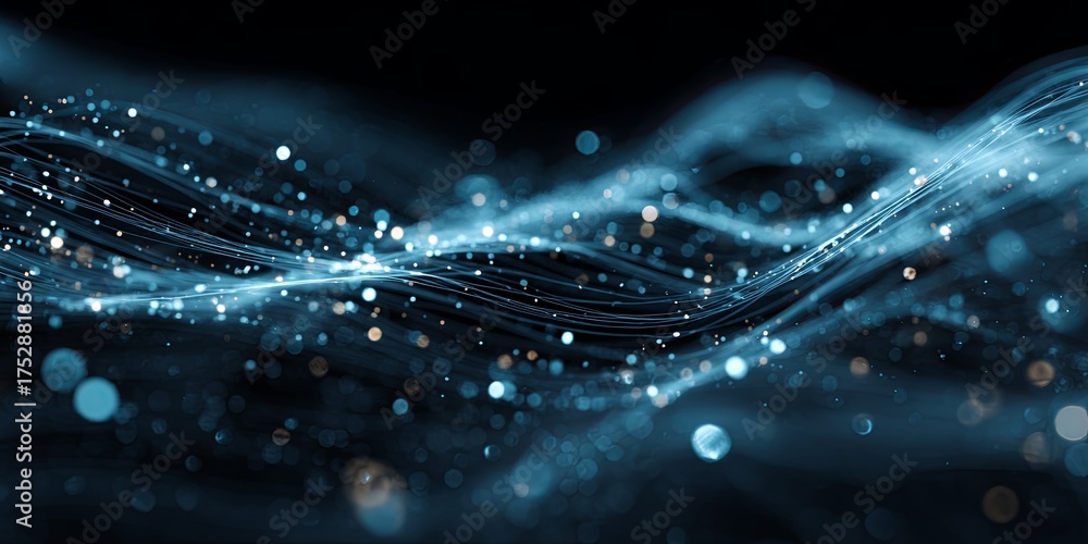 Wall mural abstract digital background featuring glowing blue particles and lines representing technology, data - Wall murals Wall mural abstract digital background featuring glowing blue particles and lines representing technology, data - Wall murals