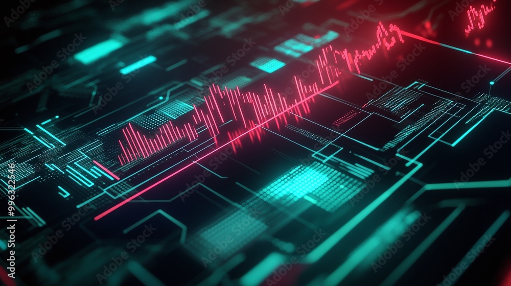 Wall mural abstract digital background featuring neon lines and circuit patterns. - Wall murals Wall mural abstract digital background featuring neon lines and circuit patterns. - Wall murals