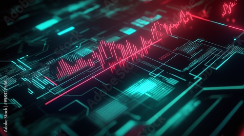 Wall mural : Abstract digital background featuring neon lines and circuit patterns -