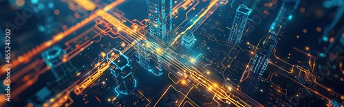 Wall mural : Abstract digital background science technology networks big data link 3d - ai generated illustration
