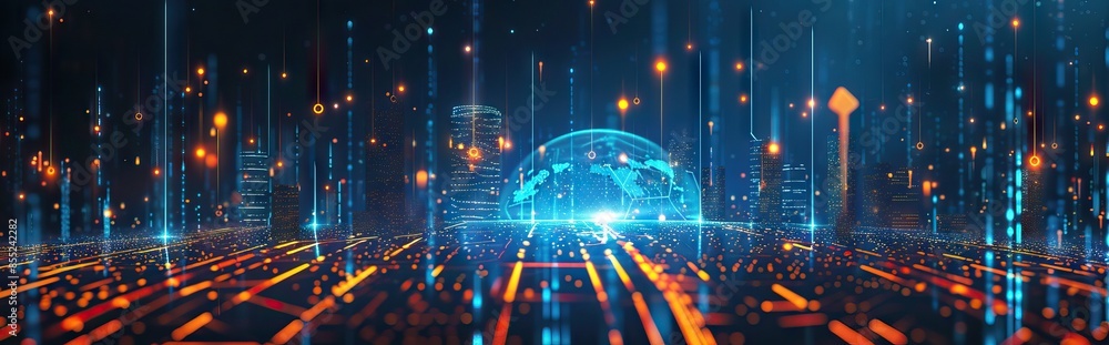 Wall mural : Abstract digital background science technology networks big data link 3d - ai generated illustration