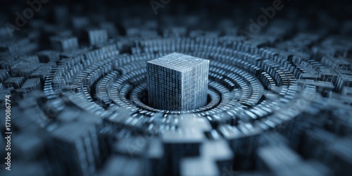 Wall mural abstract digital background with 3d cube structure and binary code circle in blue color palette for  - Wall murals Wall mural abstract digital background with 3d cube structure and binary code circle in blue color palette for - Wall murals
