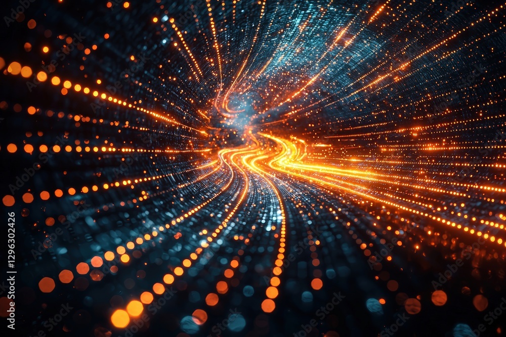 Wall mural abstract digital background with bright orange and blue light trails in motion, creating a futuristi - Wall murals Wall mural abstract digital background with bright orange and blue light trails in motion, creating a futuristi - Wall murals