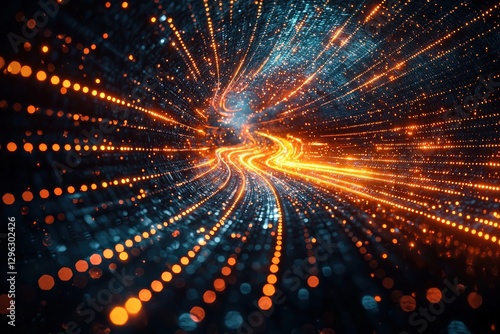 Wall mural abstract digital background with bright orange and blue light trails in motion, creating a futuristi