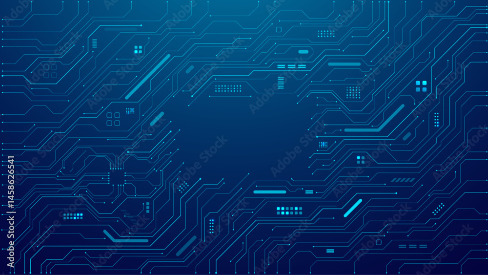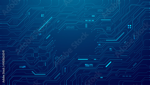 Wall mural abstract digital background with circuit line elements in technology blue. circuit board vector illu