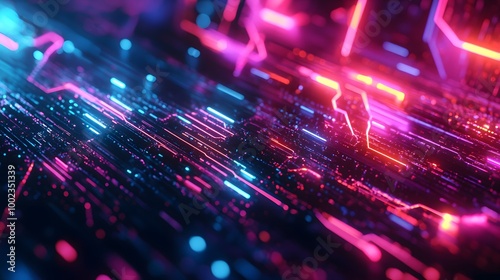 Wall mural : Abstract digital background with colorful glowing lines and futuristic elements, representing techno