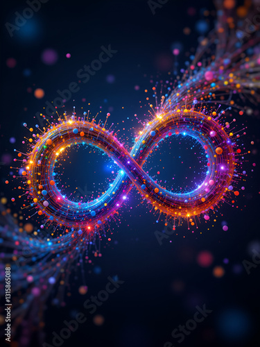 Wall mural : Abstract digital background with colorful infinity symbol spiral dots and particles
