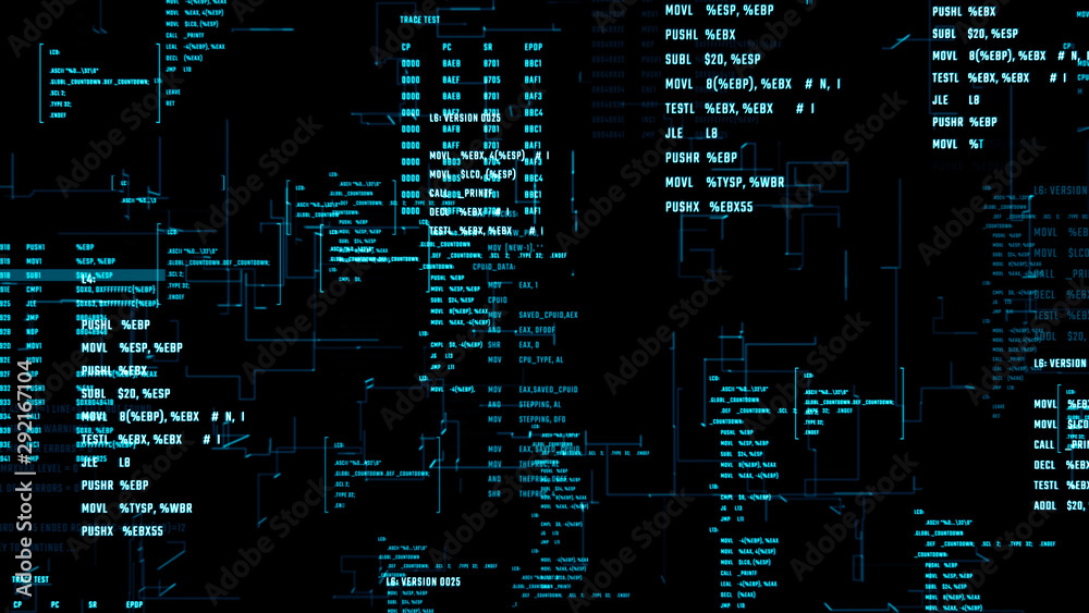 The watermark will not be included on Wall mural.: Abstract digital background with data flow - working program code in a cyberspace -