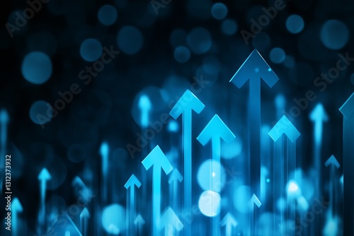 Wall mural : Abstract digital background with glowing blue arrows pointing upwards in a shimmering environment :